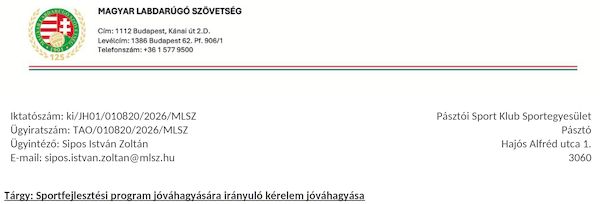 | A kedvezményezett neve: | Pásztó Városi Önkormányzat |
